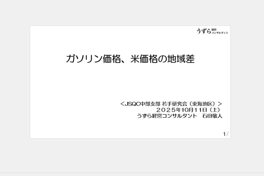 10月11日(土)に日本品質管理学会 中部支部 若手研究会において、発表をしました。